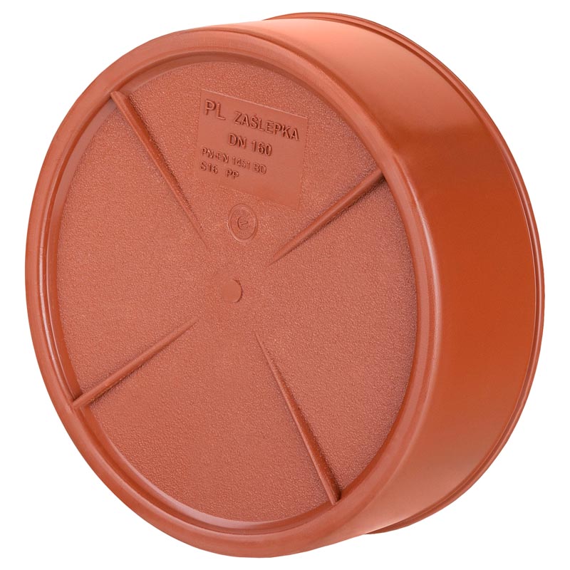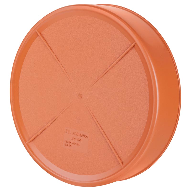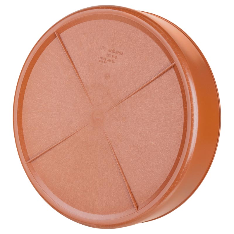 Kanalisationsrohr-Endkappe in Orange, erhältlich in Durchmessern von 110 mm bis 315 mm. Zum dauerhaften Verschließen von Rohrenden in Abwassersystemen.
