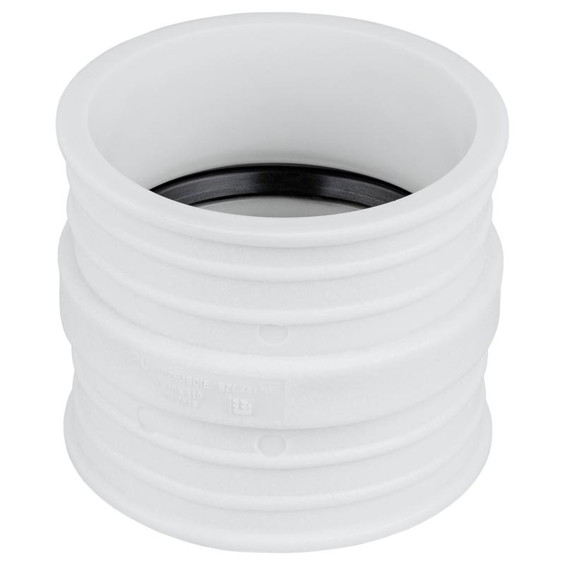 Transición de mampostería sellada en varias versiones de 110/110 a 400/110. Proporciona una conexión permanente y a prueba de fugas para las tuberías de alcantarillado que atraviesan paredes y cimientos.