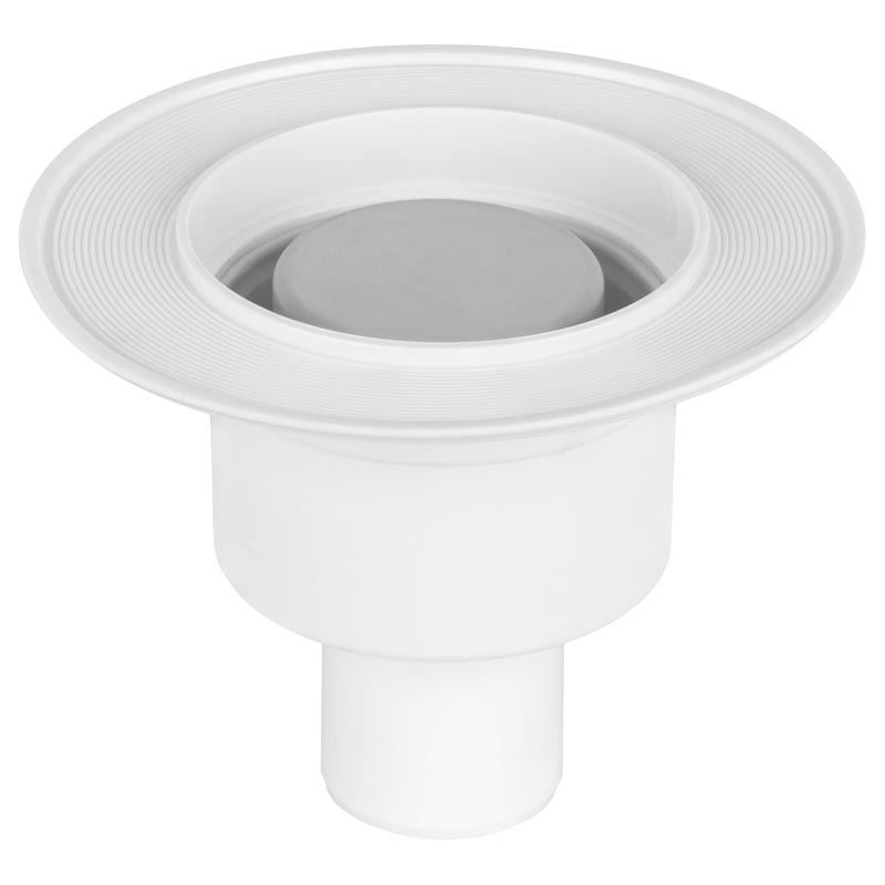 Kratka kanalizacyjna prosta z regulowaną wysokością, kołnierzem i rusztem plastikowym, dostępny w kolorach białym i szarym. Warianty z pływakiem lub bez oferują wszechstronność zastosowań w systemach kanalizacyjnych.