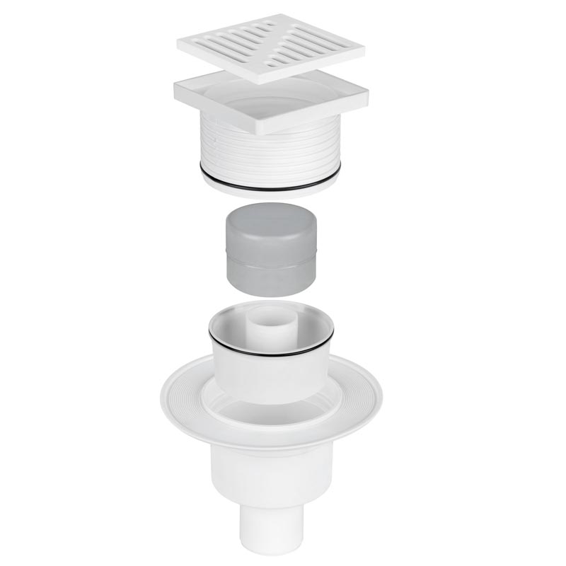 Kratka kanalizacyjna prosta z regulowaną wysokością, kołnierzem i rusztem plastikowym znajduje zastosowanie w budynkach mieszkalnych, komercyjnych i przemysłowych. Produkt idealnie sprawdza się w miejscach takich jak łazienki, kuchnie i tarasy. Wariant z pływakiem zapewnia dodatkowe zabezpieczenie przed brzydkimi zapachami po odparowaniu wody z syfonu.