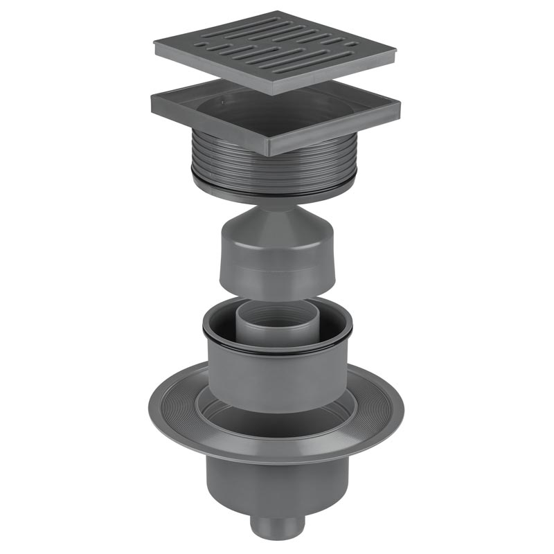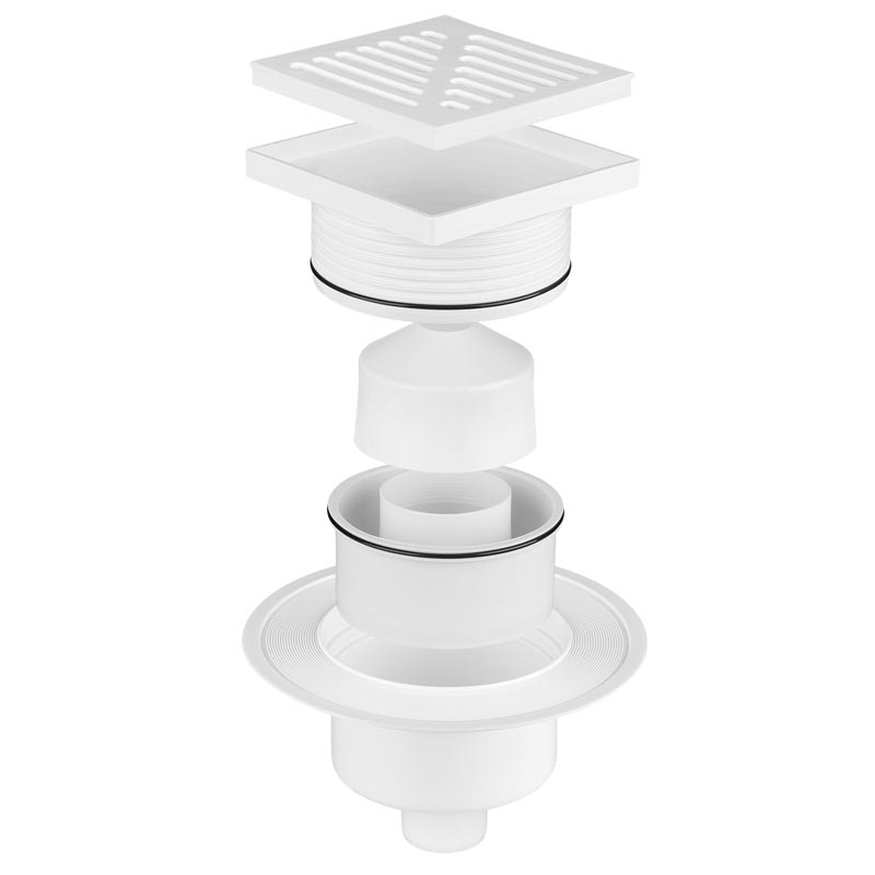 Kratka kanalizacyjna prosta z regulowaną wysokością, kołnierzem i rusztem plastikowym znajduje zastosowanie w budynkach mieszkalnych, komercyjnych i przemysłowych. Produkt idealnie sprawdza się w miejscach takich jak łazienki, kuchnie i tarasy. Wariant z pływakiem zapewnia dodatkowe zabezpieczenie przed brzydkimi zapachami po odparowaniu wody z syfonu.