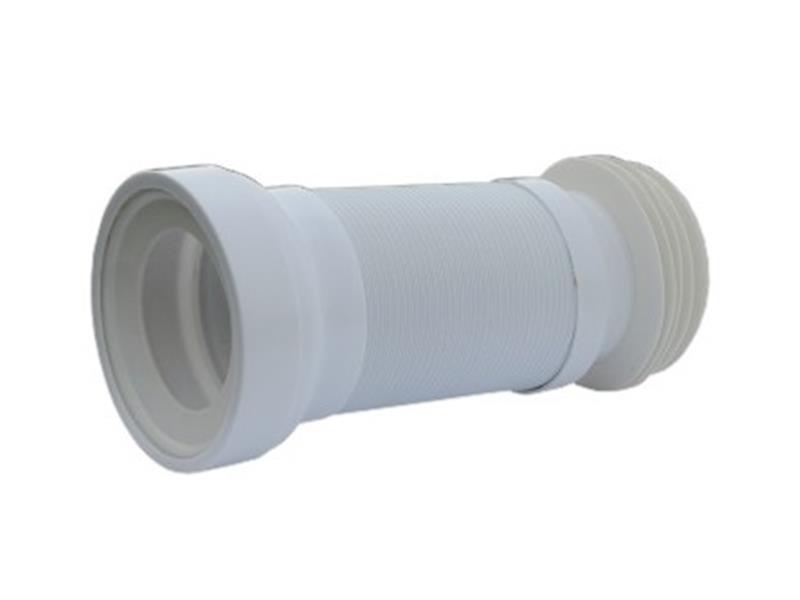 Rozciągliwe złącze WC w kolorze białym, umożliwiające elastyczne i szczelne połączenie miski ustępowej z instalacją kanalizacyjną. Idealne do trudnodostępnych lub nietypowych konfiguracji.